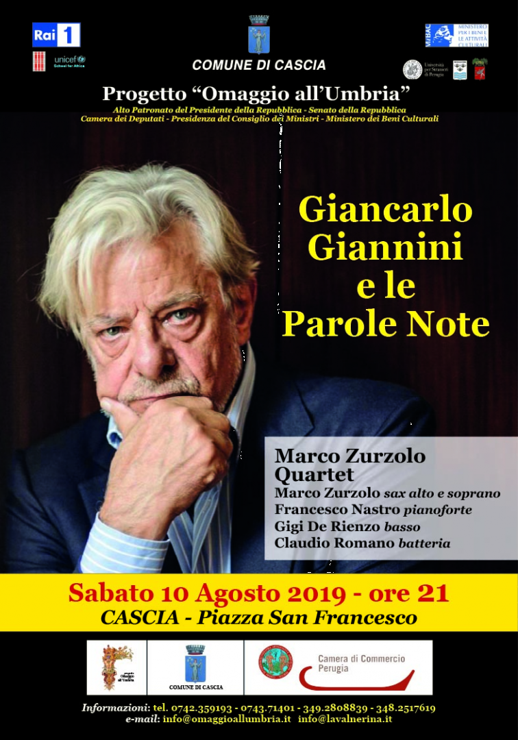Giancarlo Giannini e il Marco Zurzolo Trio in “Le Parole Note” a Cascia, sabato 10 agosto 2019