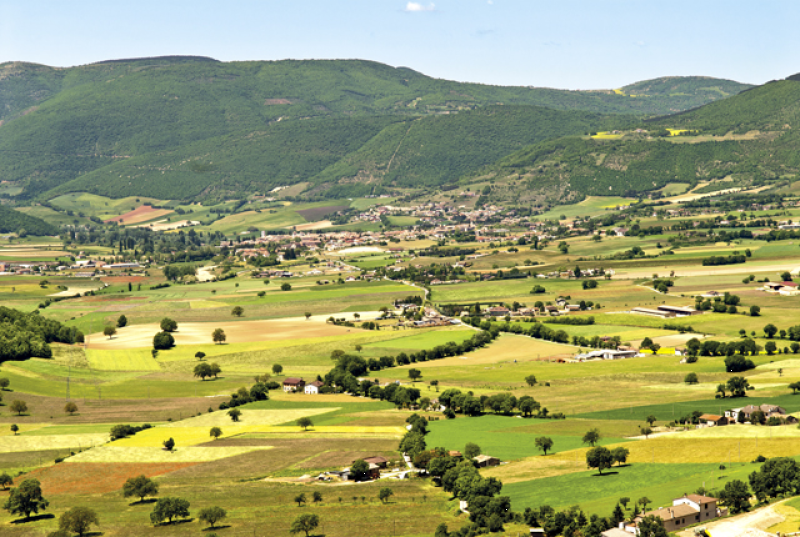 La bellezza e l’ordine della città di Norcia, in Valnerina, si specchiano nel territorio circostante, dove le forme geometriche dei campi fortificati da siepi e da querce sono punteggiati da un mosaico di insediamenti, un tempo distinti in Castelli, centri fortificati, e Ville, insediamenti aperti, uniti fra loro da antiche strade e sentieri. Oggi queste strade offrono divertenti occasioni per passeggiate di scoperta e di relax in pianura e, salendo in quota, in montagna fino ad arrivare alla Forca di Ancarano o sull’altopiano di Castelluccio, che per la sua struggente bellezza fu equiparato al Tibet dal grande etnografo Fosco Maraini.