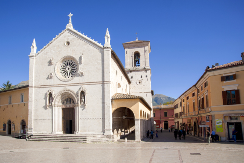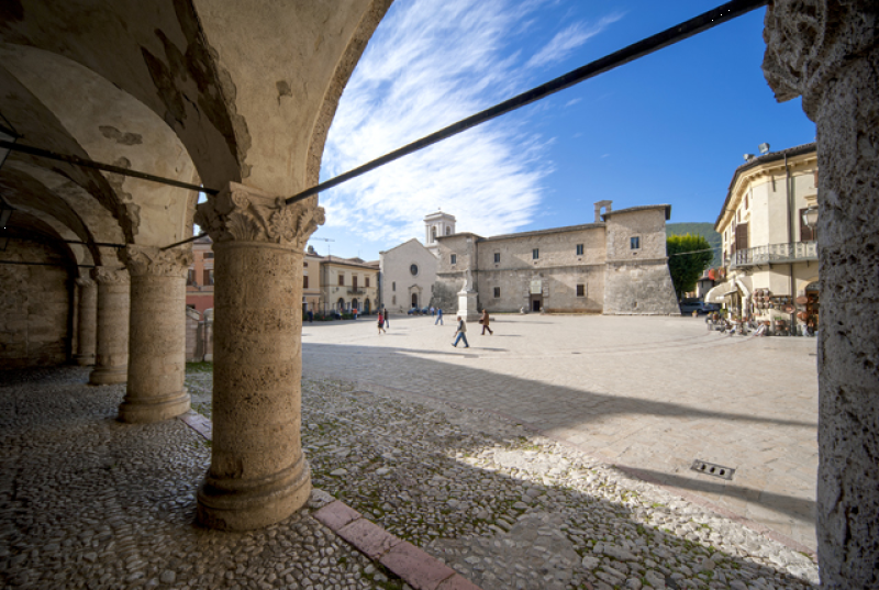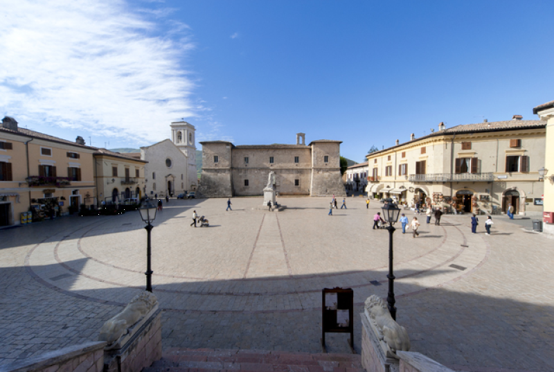 All’interno della cerchia muraria il fulcro della vita urbana è da sempre l’attuale piazza San Benedetto, dove le linee armoniose dei principali edifici civili, il Palazzo Comunale e la rocca detta la Castellina, e religiosi, la Basilica di San Benedetto e la Cattedrale di Santa Maria Argentea, rappresentano un angolo di storia italiana rimasto miracolosamente intatto nei secoli.