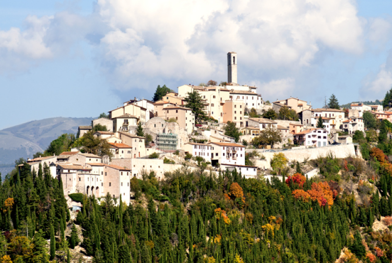 L’insediamento di Cerreto di Spoleto, costituito dal castello e dal suo borgo, è sorto alla confluenza del fiume Nera con il Vigi ed il Tissino, dove s’incrociano le principali vie di comunicazione che attraversavano, e attraversano tuttora, il territorio della Valnerina.