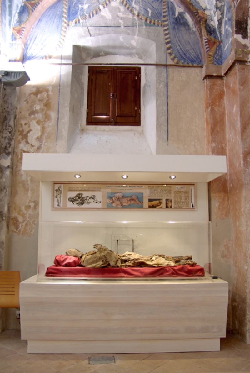Offre proprio un vero compendio del rapporto fra uomo e salute in tutte le sue forme con episodi significativi della storia della medicina e della chirurgia, che si snodano in tutto il percorso che da Cerreto di Spoleto raggiunge Preci attraverso la cura con l’acqua, attestata dal reperto lapideo che documenta l’esistenza di “Balnea Cerretana” conservata nella Chiesa di San Lorenzo, la protochirurgia con le testimonianze delle attività del medico folignate Baronio Vincenzi specializzatosi nel XVII secolo nella trapanazione del cranio, che operava presso la chiesa di Gesù e Maria a Borgo Cerreto, la cura con le erbe, illustrata nell’Orto del Ciarlatano, nell’ex Monastero di San Giacomo a Cerreto di Spoleto, sede del CEDRAV, dove è prevista la coltivazione delle varie essenze vegetali utilizzate dai “cerretani” per la preparazione di pozioni e medicamenti, la cura con le parole con l’allestimento dell’antenna dedicata al “ciarlatano”, prevista dall’Ecomuseo della Valnerina nel complesso di San Nicola a Cerreto di Spoleto, la cura con il moto con il percorso di salute e gli impianti sportivi di Forcatura a Cerreto di Spoleto e con il percorso di salute nei Bagni di Triponzo, la cura con l’acqua con le terme di acque sulfuree di Triponzo. Il percorso prosegue poi nel territorio di Preci con la cura con l’acqua nel lebbrosario di San Lazzaro a Valloncello, la cura con la fede testimoniata dall’ex voto nella Chiesa della Madonna della Peschiera a Borgo Preci, nella chiesa di San Salvatore di Campi di Norcia e nella Chiesa della Madonna Bianca di Ancarano di Norcia, la cura con i ferri esercitata dai chirurgi preciani fra i secoli XV e XVII, specializzati nell’estrazione dei calcoli vescicali e nelle operazioni alle cataratte, ed illustra con una mostra storico- documentaria a Santa Caterina di Preci in attesa di un allestimento permanente, la cura con la pietra praticata ancora nell’Abbazia di Sant’Eutizio, conosciuta come la sede della scuola chirurgica preciana ed utilizzata anche come santuario terapeutico.