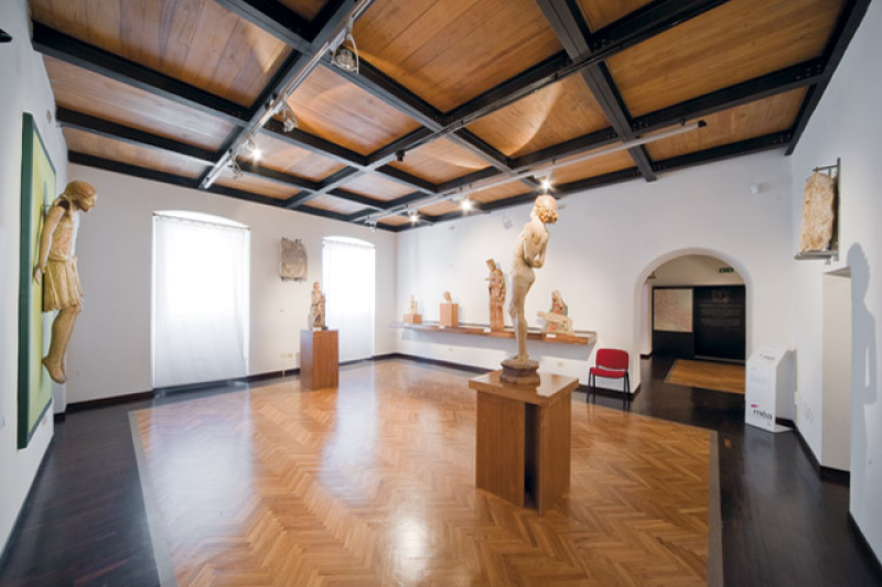 Dalla Basilica, l’itinerario conduce attraverso una comoda scalinata in direzione di Piazza Garibaldi, al Museo Civico di Palazzo Santi ove sono custodite opere d’arte di grande valore provenienti da tutto il territorio comunale. Il museo ospita anche una collezione archeologica molto consistente di epoca preromana e romana proveniente in gran parte dai lavori di scavo effettuati nell’area archeologica di Villa San Silvestro ove si conservano i resti dell’antico tempio romano e del foro realizzati nel sec. III a.C..