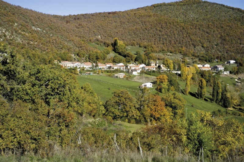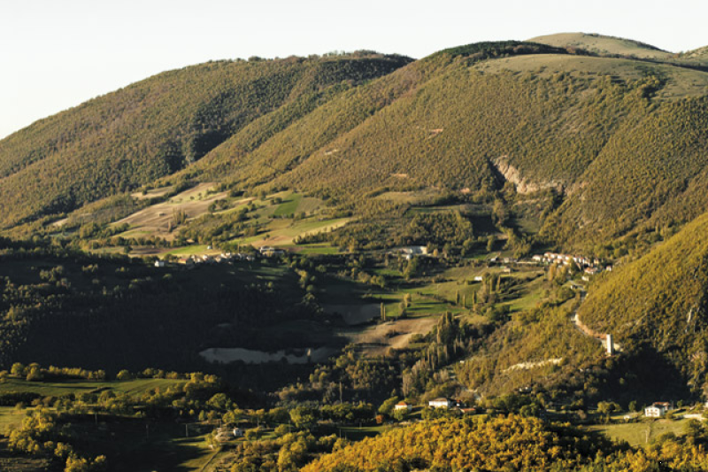Sorge sulle ripide pendici del Monte della Sassa ad ovest di Cascia lungo la strada a mezza costa che raggiungeva gli insediamenti monastici sparsi per il monte.