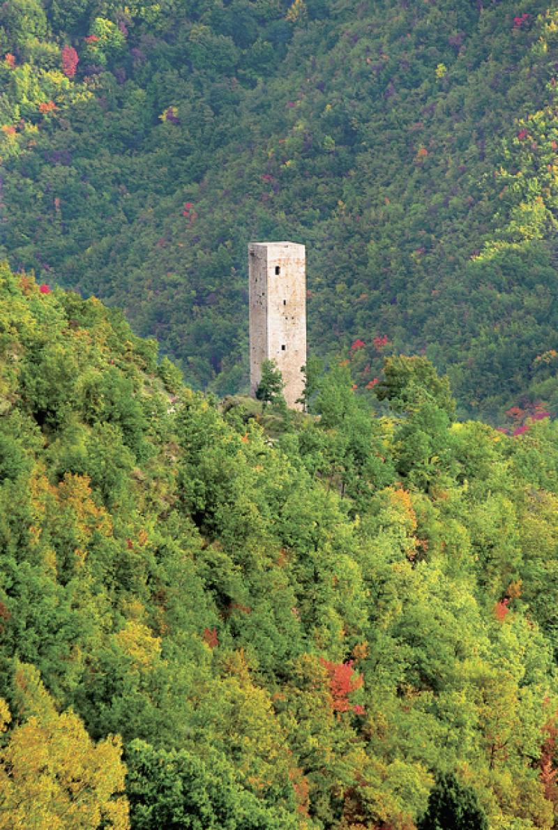 La sua posizione di vedetta sulla sottostante Valle del Fiume Corno e l`esistenza di una torre quadrata nella parte più alta dell`abitato, in funzione di cassero, (tutto ciò che oggi rimane), inserita nel sistema di avvistamento e difesa di questa parte di territorio, ripetono per giacitura e impianto l`usuale tipologia del castello di pendio. La torre è ancora oggi ben conservata e visibile.