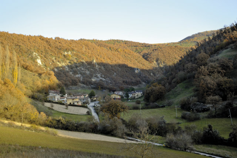 Il piccolo agglomerato di Santa Trinita sorse intorno ad una cella monastica dipendente dall`abbazia di San Lorenzo di Fano, i cui monaci assistevano anche i fedeli di Acuti, Serviglio e Colle Santo Stefano.