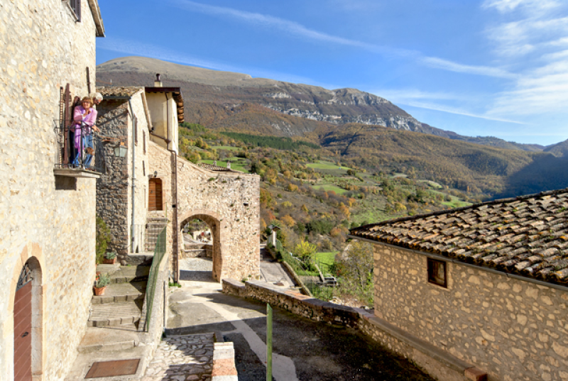 Frazione del comune di Sant’Anatolia di Narco, sorge alla confluenza di percorsi montani che collegavano Scheggino e Sant’Anatolia di Narco con Monteleone di Spoleto. Dalla tipica forma di castello di pendio, il borgo è oggi composto da due nuclei: il primo, conserva ancora una parte delle mura di cinta, una delle porte di accesso ed altri elementi tipicamente medievali, come archi, sottopassi e portali in pietra. L‘altro nucleo, cresciuto fuori le mura attorno alla Chiesa di Santa Maria, è costituito da edifici prevalentemente destinati ad uso agricolo.