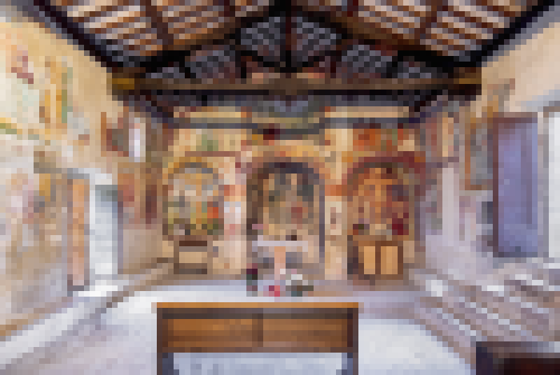 All’ingresso del castello si trovava la “Grotta dell’eremita” e una cella monastica benedettina divenuta poi oratorio di San Giovanni Battista e nucleo principale del castello di Caso. L’oratorio ha una struttura a due navate a cui si accede attraverso un portale ogivale, ripartito da un soffitto in impalcato fatto con travi di quercia. All’interno è possibile ammirare affreschi quattrocenteschi di grande bellezza.