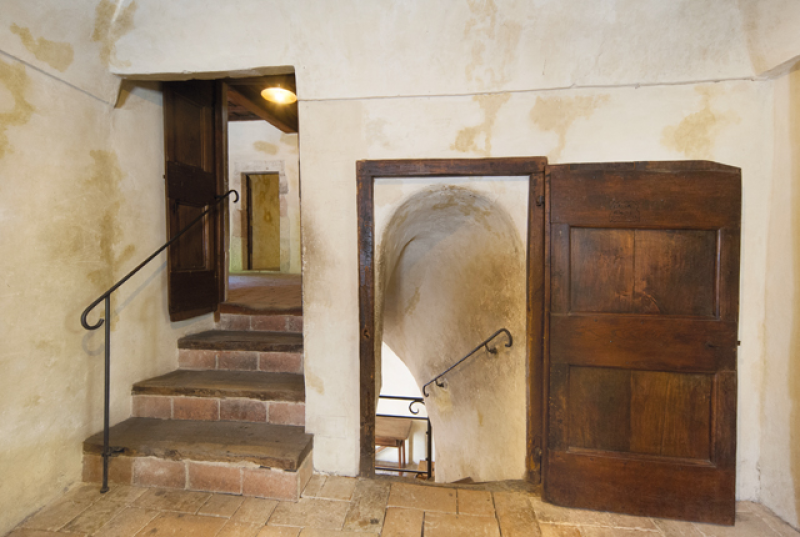 Il piano terra corrisponde alla parte più antica dell’edificio e attraverso la scalinata interna si sale al piano di sopra in cui si aprono due stanze: una che si affaccia su un vicolo del borgo e dall’altra si può notare un suggestivo scorcio dello Scoglio Sacro; in prossimità di questa finestrella sarebbe stata ubicata la culla di Rita.