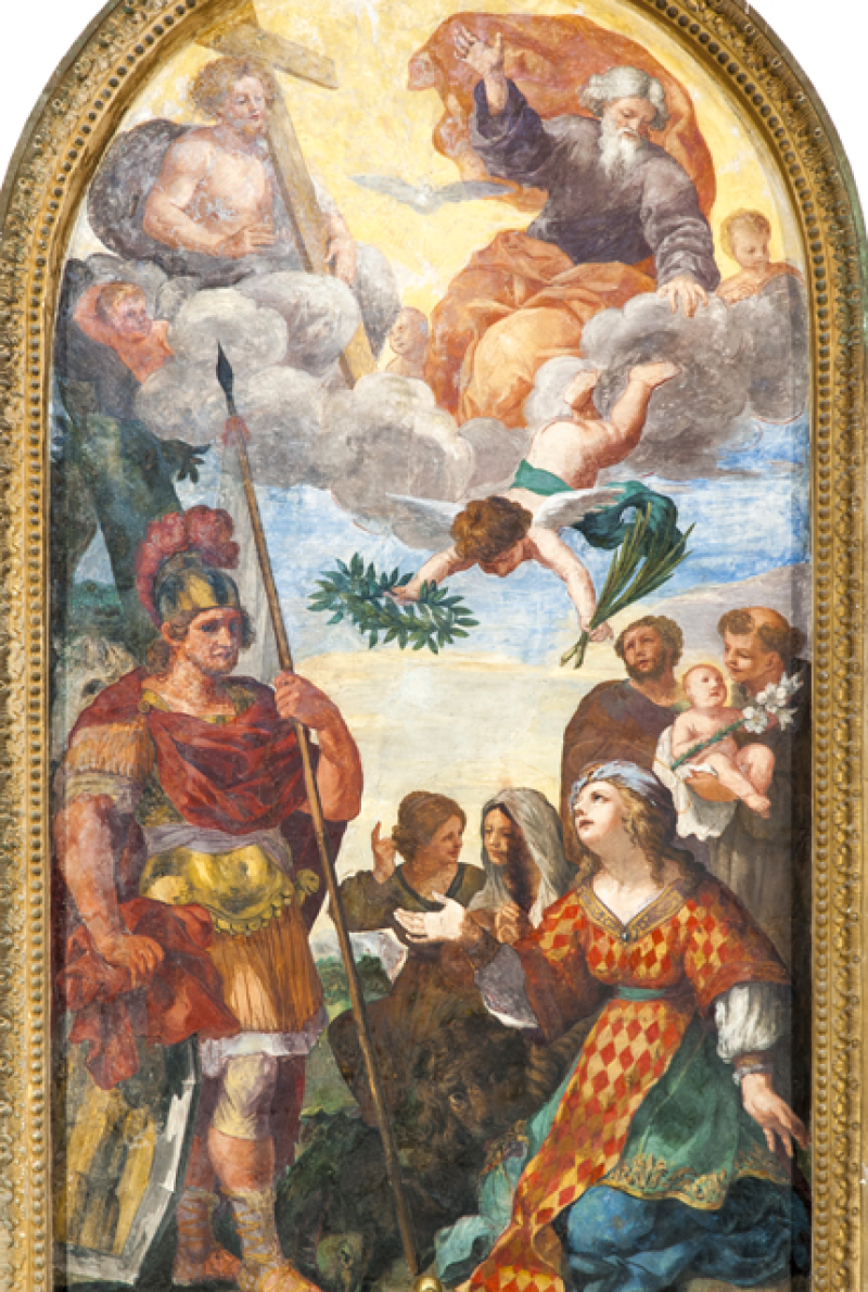 Nell’altare di destra sono presenti la SS Trinità e i santi Artemio, Candida e Antonio da Padova, eseguiti da Salvi Castellucci. In questo altare si pensa siano custodite le reliquie dei martiri Artemio, Candida e di sua figlia Paolina che furono estratte dal Cimitero di S. Callisto a Roma e donate al Cardinal Poli da papa Urbano VIII per trasferirle nella nuova chiesa. Nell’ultimo altare è possibile ammirare il Crocifisso ligneo della scuola del Bernini. Opera di Salvi Castellucci è anche il dipinto raffigurante la Madonna con San Francesco che si trova nella lunetta. Al di sotto di tutti gli affreschi sono poste le api barberiniane, emblema di papa Urbano VIII, mentre le acquasantiere poste nei pilastri sono in pietra e a forma di ghianda, simbolo del Cardinal Poli.