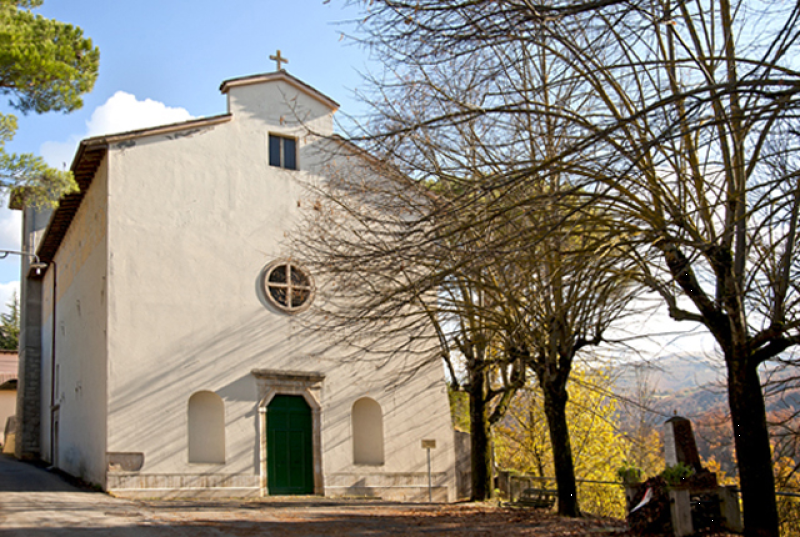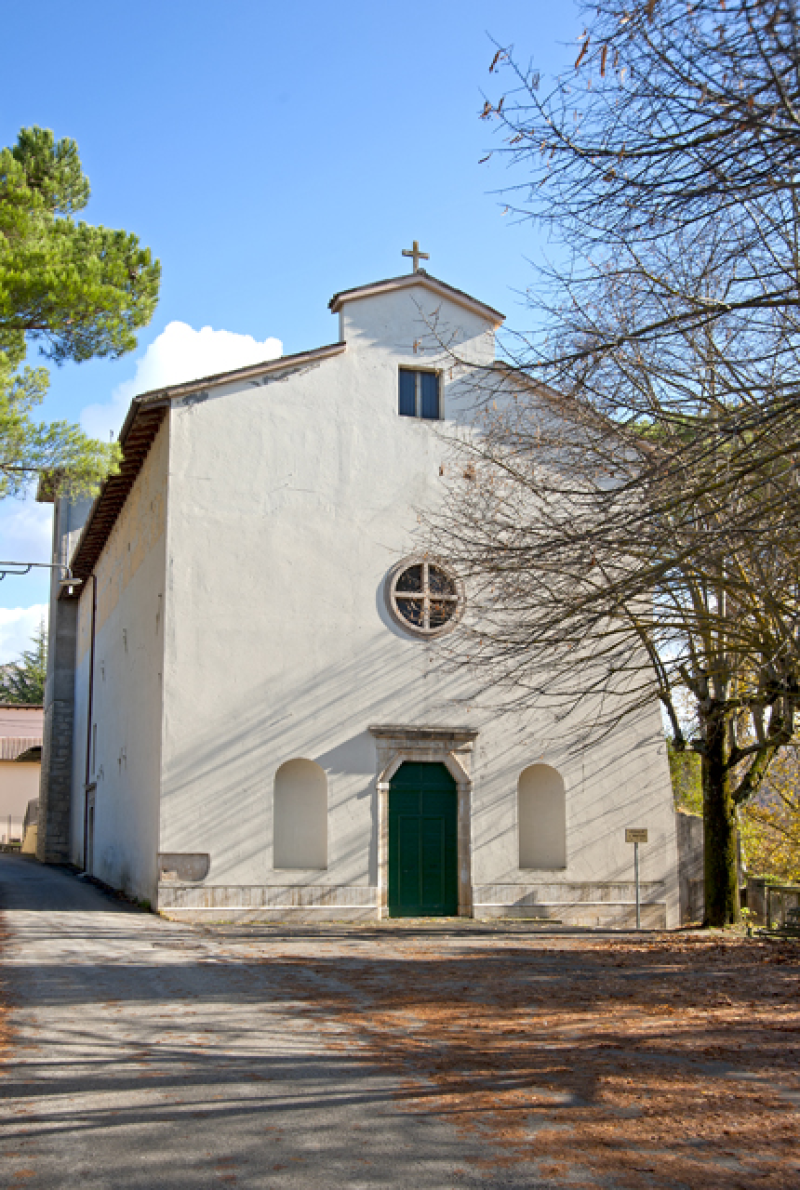 Ricostruita all`interno nel sec. XVIII, contiene due tele del sec. XVII e una Madonna col Bambino (nota anche come pala della Madonna dei Monti, dalla confraternita omonima che pagò l`altare), e una tavola degli inizi del sec. XVI proveniente dalla diruta Chiesa di San Valentino sull`altopiano di Acuti, di un pittore che per i caratteri stilistici può essere identificato con Cola dell`Amatrice. Troviamo inoltre una croce astile in lamina di rame sbalzata, ricca di immagini e di ornamenti de sec. XVI. test