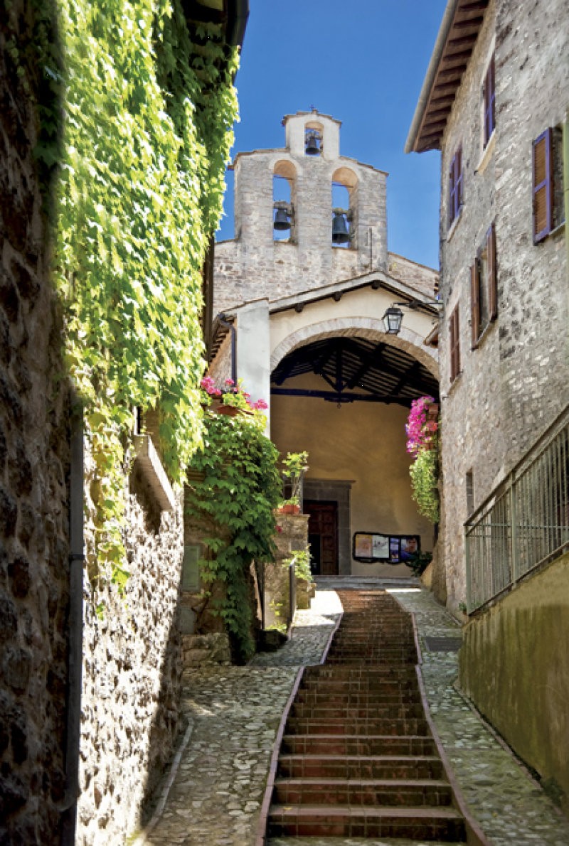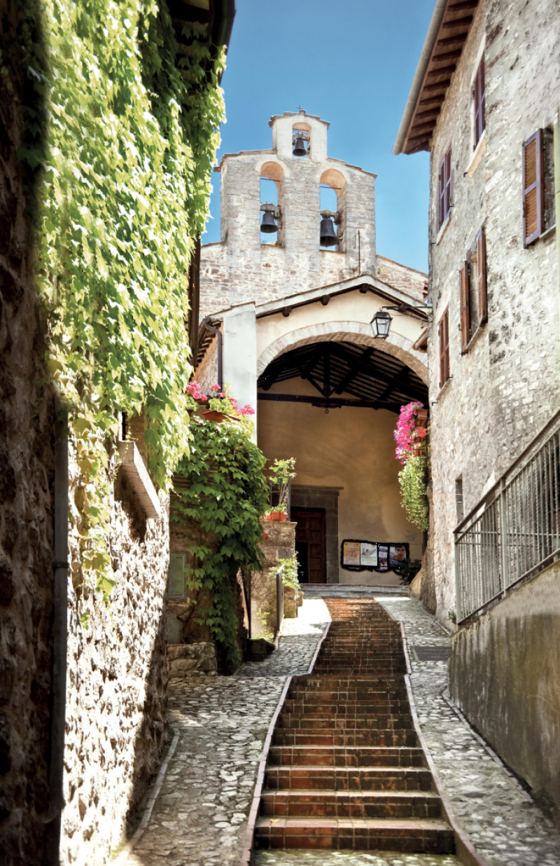L’assetto attuale della Chiesa di S. Nicola, a tre navate, risale al 1572. Nel 1663, a offrire un riparo dalle inclemenze delle stagioni, venne aggiunto lo spazioso atrio. Nella navata sinistra, un importante affresco della Sacra Famiglia di Piermattia Gigli da Spoleto (1584), distaccato dall’antico palazzo comunale. Segue l’altare di S. Lucia, fatto costruire da Giovan Simone Ottaviani (sec. XVII), con la tela del perugino Pierino Cesarei raffigurante S. Antonio da Padova e S. Lucia, qui curiosamente vestita alla turchesca.