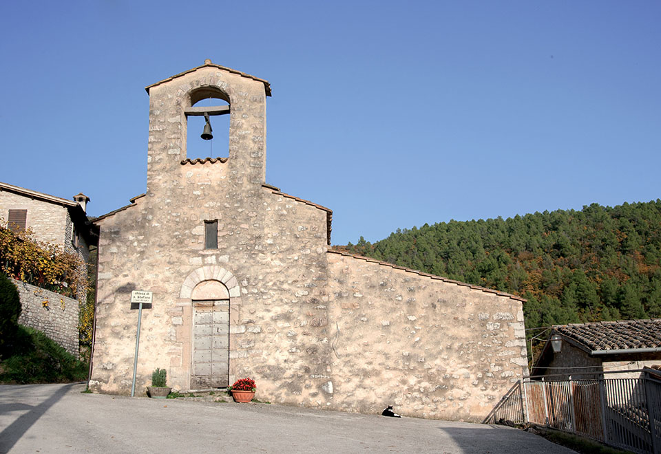 La Chiesa di Santo Stefano occupa il centro del paese. Edificio tardo medievale con impronta romanica, denunciata dal portale lunettato, dalla monofora e dal campanile a vela. L’interno conserva la copertura a capriate lignee modanate della fine del XV secolo e la decorazione a fresco nella parte absidale (S. Antonio ab., Santo Stefano, Crocifissione, S. Rocco e S. Antonio da Padova, datato 1589) e, in parte, nella parete destra (S. Leonardo, Madonna in Trono e Madonna del latte, sec. XV).
