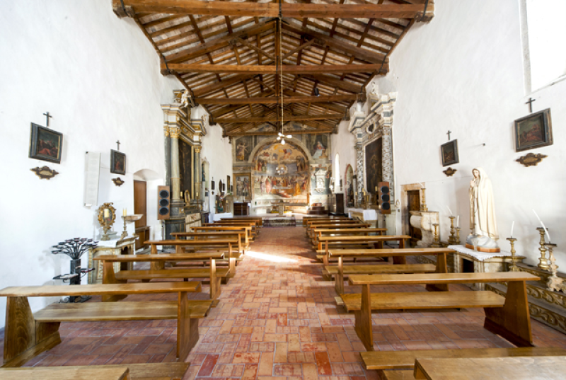 All’interno è possibile ammirare diverse opere eseguite dalla mano di Jacopo Siculo. Un esempio è l’affresco della Dormitio Mariae, insieme ad altre tele d’altare del XVII secolo. Sempre dello stesso autore, un affresco con i SS. Rocco e Sebastiano, i santi protettori della peste che si ritrovano in molte chiese della Valnerina.