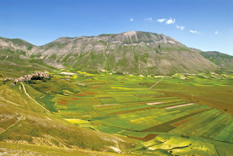 La celeberrima Fiorita di Castelluccio a giugno, caratterizzata da fioriture multicolori di straordinaria suggestione, dipende dalla storica utilizzazione del suolo attuata dall’uomo, in particolare dalla coltivazione della pregiata Lenticchia di Castelluccio.
