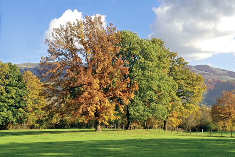Al di sopra dei paesi ci sono i boschi, prima dominati dal Cerro e più in alto dal Faggio, sotto i seminativi, i prati falciabili e gli erbai, intersecati dalle antiche strade fiancheggiate da filari di querce e da siepi di Acero campestre e Biancospino, punteggiati di alberi isolati e da svettanti gruppi o file di pioppi cipressini.