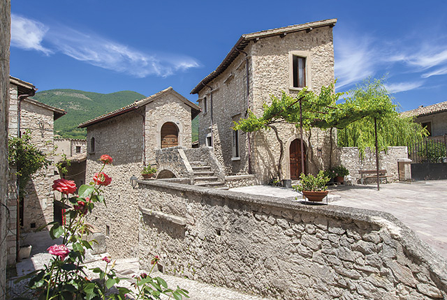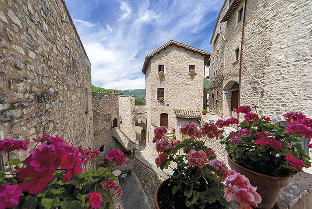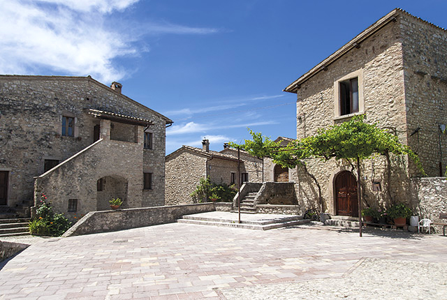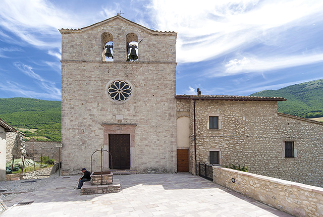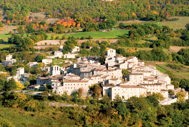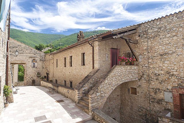 Vallo di Nera is a free castle-town founded near a pre-existing feudal settlement called Flezano, as a result of a concession issued by the city of Spoleto in 1271. Situated on a hilltop, the town overlook the expanse of the Nera Valley. Its name can be traced back either to the valley itself (the valley’s ancients name was Castrum Valli), to the Roman defensive vallum or to the Longbard name of the forest: vald. The current coat of arms features three united castles representing the nineteenth-century union with the castle-town of Meggiano and Paterno.