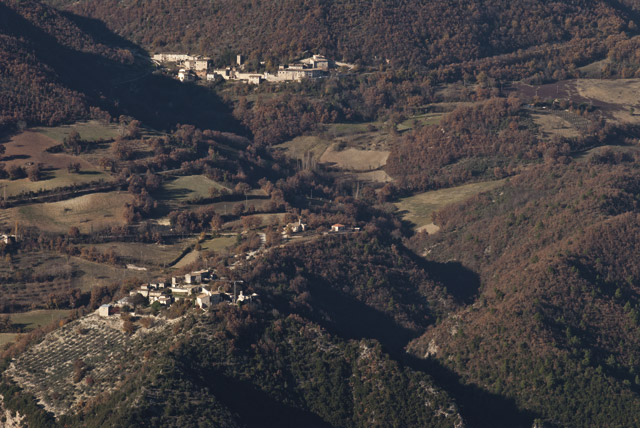 Paterno is a village in the municipality of Vallo di Nera at an altitude of 605 m. a.s.l. with 23 inhabitants in 1971. Paterno can be considered part of a territorial “system” that was set up between the 11th and 14th centuries, which consisted of the castle, the parish church (San Giusto), the village (Piedipaterno) and a monastic settlement (L`Eremita). The latter is the oldest part of the entire system and was the decisive impulse for its construction and organisation.