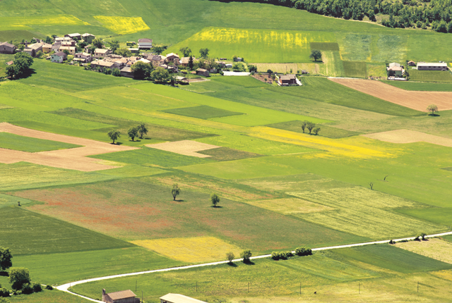 The harmonious shape of the streets and squares of the town of Norcia is reflected in the geometric shapes of the fields fortified by hedges and oaks, and the linear elegance of its churches and the buildings of the centre is reflected again in the mosaic of the villages, scattered across the countryside and joined by ancient roads and trails.