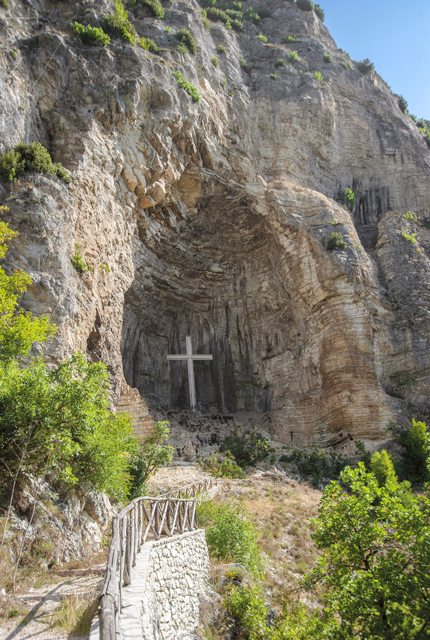 Due to the rock stratifications, the grotto floor is wearing away towards the outside, thus forming a sort of natural amphitheatre, above Roccaporena. Inside, there is a two-layered ledge, on which it is said Rita prayed.