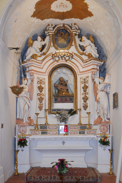 The bell tower presents an 18th century crown, which was later modified, while the apse is polygonal. The structure and floor are entirely in stone. The roof, in wood and brick, is held up by arches in the nave and by a vault above the presbytery.