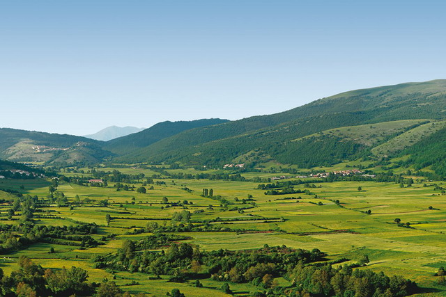 Chiavano, the characteristic, medieval castle, which gives the area its name, dominates from the summit of a rounded hill at the head of the valley at an altitude of 1,128 metres. At its feet, the flat valley bottom opens out in a southerly direction bordered by steep slopes up to a kilometre and a half apart. Along the strips connecting the flat land to the high ground are Villa San Silvestro and Buda on one side, Coronella and Trognano on the other. The first sensation that strikes the traveller, once again, is that of a beautiful location which works for both nature and man. Livening up and defining the landscape, environment, nature and history of the Chiavano Plateau even further, are the imposing remains from the 3rd century B.C. of a Roman temple at Villa San Silvestro right beside the village where the long plain begins to stretch out. These remains underline the importance in terms of religion and economics of the ancient location. To enjoy a complete view of the entire plateau, go to the town of Pianezza, in the municipality of Leonessa.