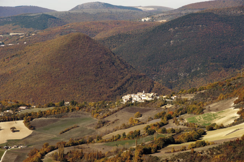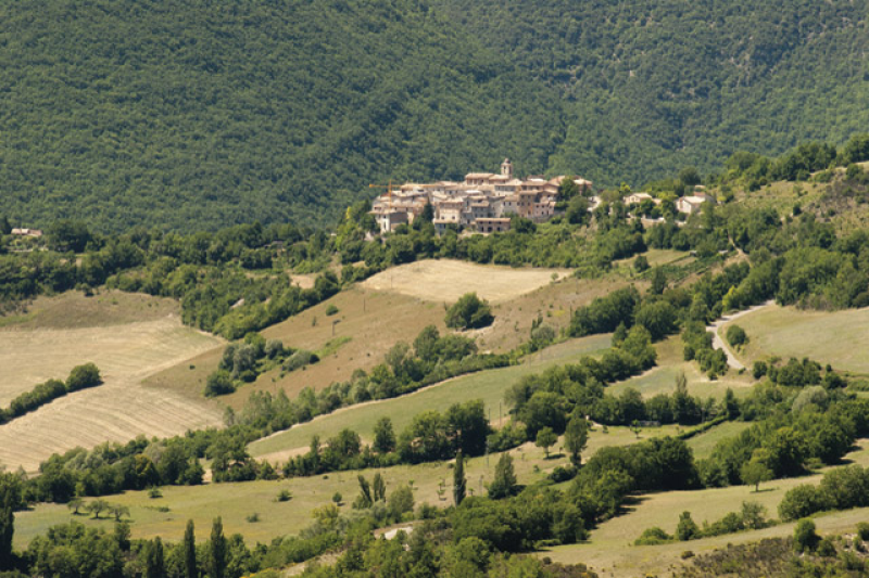 La sua natura di castello, certamente fondato in epoca tardo medievale (secoli XIII-XIV), oltre che dal toponimo, è attestata dalla sua posizione (dalla quale si domina il paesaggio della Valle del Campiano e della Valnerina) e dai caratteri morfologici del nucleo.