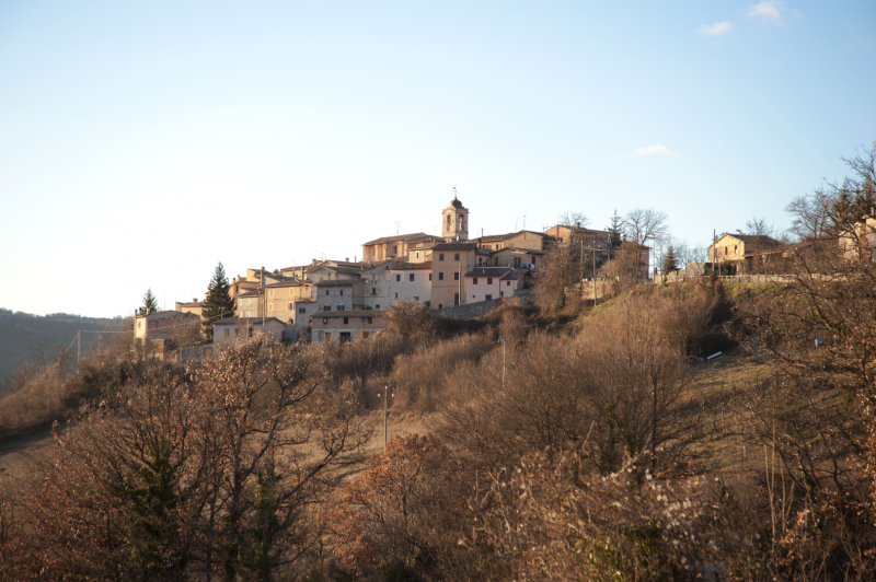 L`insediamento di Castelvecchio sorge su un dosso e non presenta oggi tracce di fortificazione.