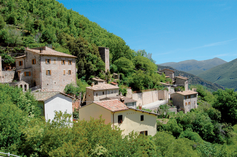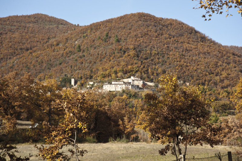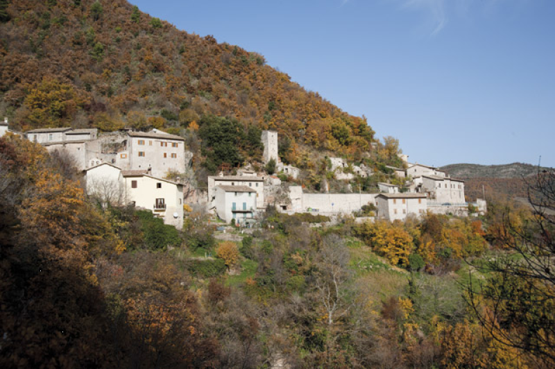 L`insediamento di Montefiorello, nel comune di Vallo di Nera, si presenta oggi con i caratteri di villa di transito ad andamento lineare attraversata dalla via montana. Una conferma dell`importanza della strada montana è rappresentata dall’esistenza, lungo il suo tracciato, della pieve dì Paterno e di numerosi centri fortificati, certamente molto antichi anche se l`attuale aspetto dei castelli è databile intorno ai secoli XIII e XIV.