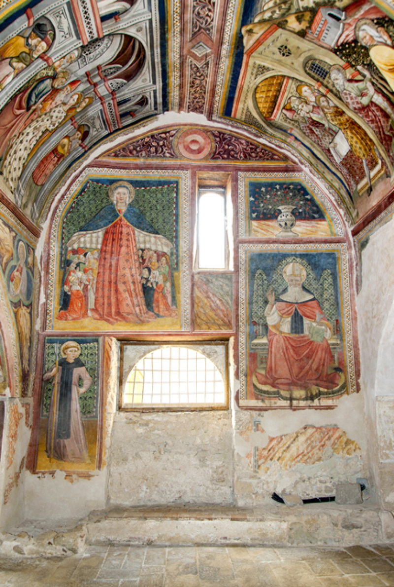 La volta della navata centrale era occupata da sei storie di Gioacchino e Anna e della Vergine di cui sopravvivono più o meno integri quattro episodi e alcune scritte lacunose esplicative dell`intero ciclo in vernacolo; l`autore va riconosciuto in Giovanni Sparapane che qui parla uno squillante linguaggio tardo-gotico, quasi originato dalla prossimità geografica e culturale di Camerino e Foligno, senza trascurare i debiti contratti con Nicola da Siena, già da tempo installato in zona. casino online stranieri