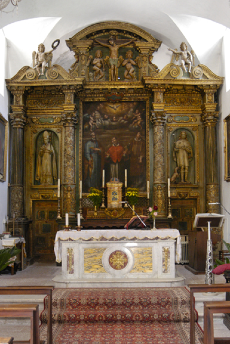 La Chiesa di San Carlo Borromeo presenta l`interno a navata unica, con nove altari lignei barocchi dei sec. XVII e XVIII, donati da famiglie del luogo.