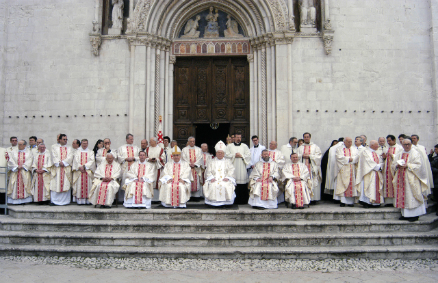 Terminato il Corteo Storico viene celebrata la solenne funzione religiosa presieduta dal Vescovo, durante la quale viene esposto il reliquiario gotico di San Benedetto.