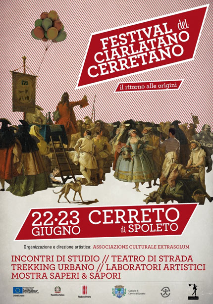 Sotto la direzione scientifica di Luciano Giacché, organizzato dal Comune di Cerreto di Spoleto, dal CEDRAV e dalla Associazione Extrasolum, che ne cura anche la direzione artistica, il Festival del Ciarlatano/Cerretano si aprirà con una giornata di studio sabato 22 giugno per l’allestimento di un centro di documentazione sui “Cerretani”.