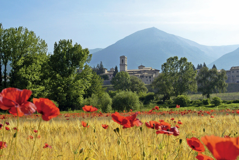 La bellezza e l’ordine della città di Norcia, in Valnerina, si specchiano nel territorio circostante, dove le forme geometriche dei campi fortificati da siepi e da querce sono punteggiati da un mosaico di insediamenti, un tempo distinti in Castelli, centri fortificati, e Ville, insediamenti aperti, uniti fra loro da antiche strade e sentieri. Oggi queste strade offrono divertenti occasioni per passeggiate di scoperta e di relax in pianura e, salendo in quota, in montagna fino ad arrivare alla Forca di Ancarano o sull’altopiano di Castelluccio, che per la sua struggente bellezza fu equiparato al Tibet dal grande etnografo Fosco Maraini.