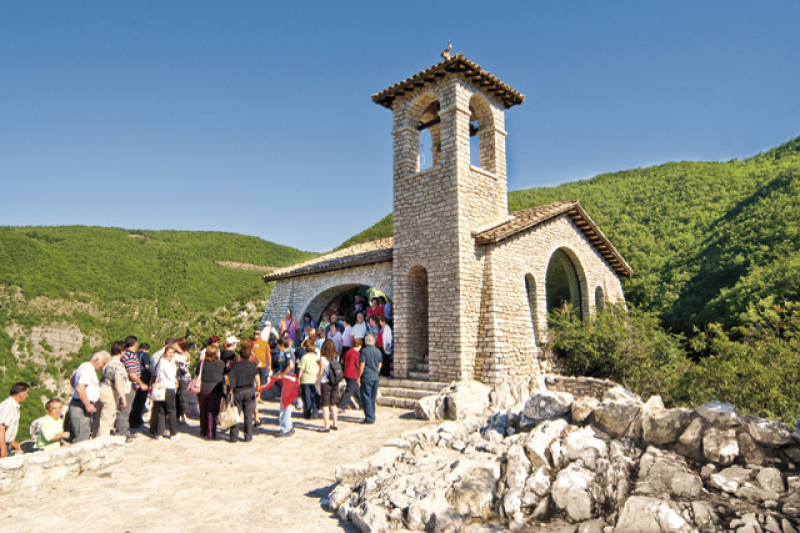 Lasciata Leonessa, attraversando in direzione di Cascia la frazione di Vindoli, fucina di abili “mastri ferrari”, ai piedi del castello di Pianezza, un bivio conduce a S. Giovenale. Prossimo al borgo, immerso nel verde e nel silenzio delle geometrie che caratterizzano il paesaggio agrario dell’Altopiano di Chiavano, suddiviso da secolari recinzioni, ove dominano la quercia, l’acero montano e il pioppo e sono ancora leggibili le antiche centuriazioni romane, il santuario della Madonna della Paolina. Qui, nel 1665, la Vergine apparve a una pastorella di S. Giovenale, o di Buda, facendo scaturire una limpida fonte. Sulla prima edicola, accanto al pozzo dell’acqua miracolosa, sorse una chiesa ingrandita nei secoli dove ogni anno, il 25 di agosto, ai canti dei tanti pellegrini fa da sfondo il vociare paesano dell’affollata fiera che costituisce uno degli appuntamenti annuali più importanti per la gente della montagna dell’alta Valnerina.