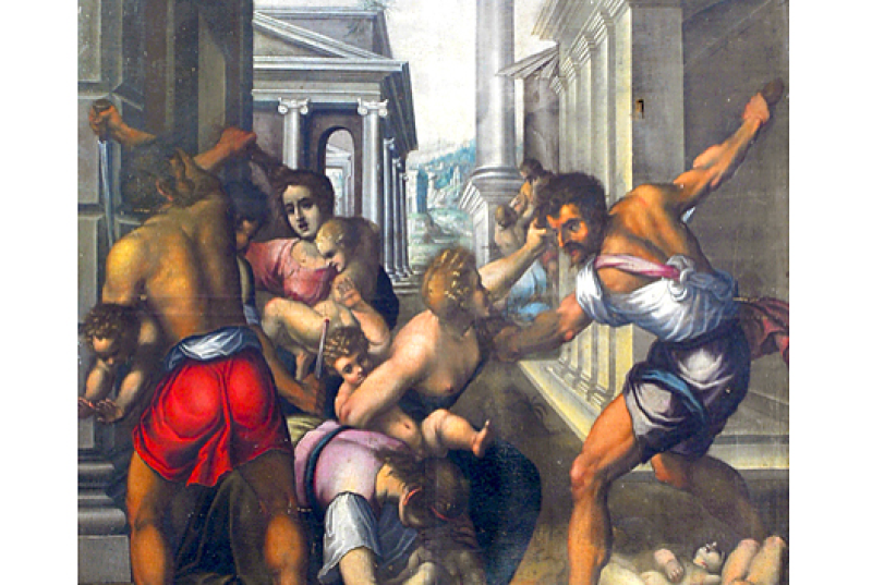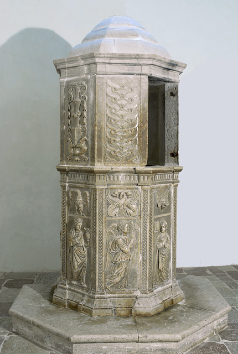 Degna di attenzione, la tela col martirio “in oleo” di San Giovanni Evangelista commissionata a Guidbaldo Abbatini, pittore del Palazzo Apostolico, in ringraziamento per un miracolo attribuito all’Evangelista, protettore dei frantoi: verso la fine del ‘500 una pesante macina di pietra, sfuggita dall’asse, lasciò illesi gli operai addetti al frantoio. La tela, trasportata da Roma nel 1644 da un “mularo” del luogo, fu donata dal Cardinale Fausto Poli nativo di Usigni.