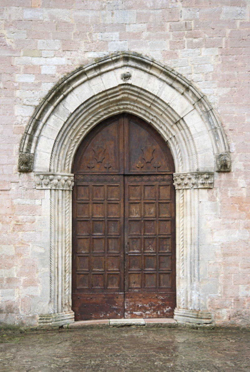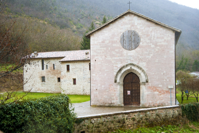 Sul terreno pianeggiante lungo il fiume e al lato della strada per Ponte, la Chiesa di San Lorenzo e l`edificio conventuale che vi si congiunge con un unico lungo braccio, ortogonale ad essa, conservano quasi intatto il decoro che possedevano quando sorsero quasi sette secoli fa. La facciata, in pietra concia di colore rossastro, a due spioventi, non presenta altri ornamenti che quelli finemente scolpiti del portale archiacuto, con fasci di colonnine nella strombatura e ghiere nell`arco, e del piccolo rosone, il cui effetto si è però perduto con il restauro.