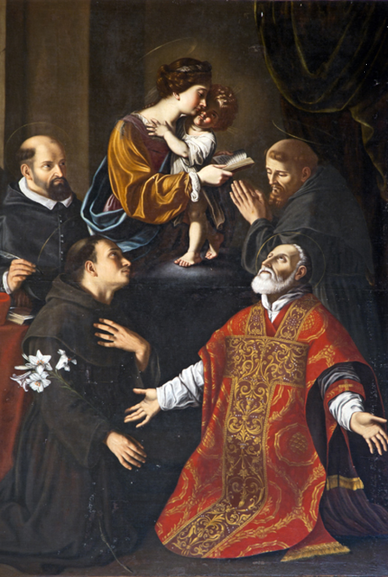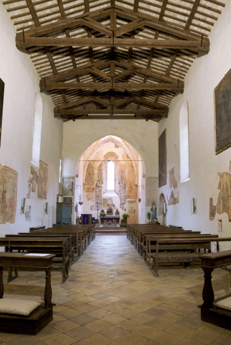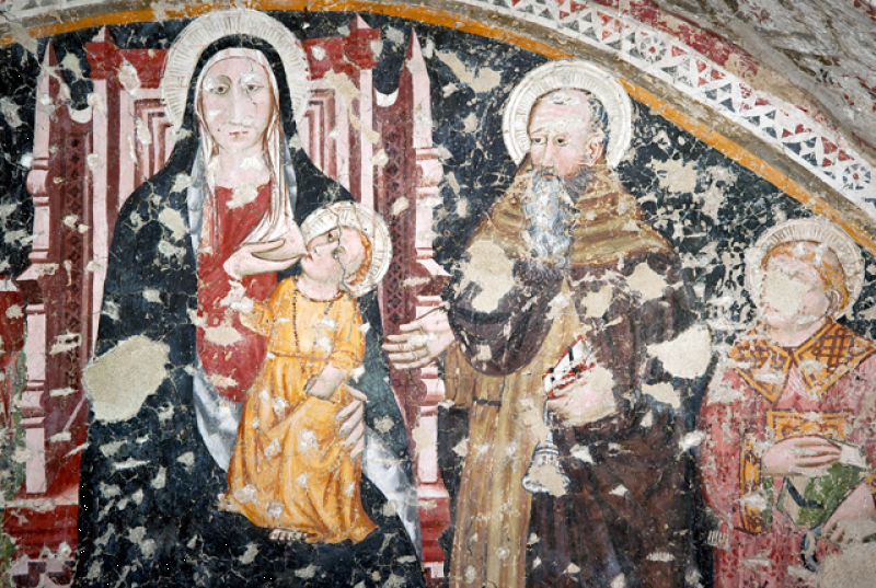 Nella controfacciata, a destra, Madonna della Misericordia, dei primi del sec. XV. Nella parete destra, resti di affreschi votivi del sec. XIV, di semplice fattura.