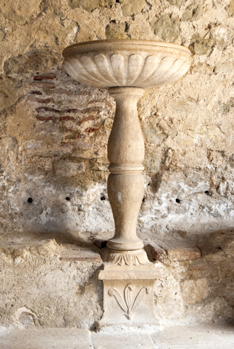L`ingresso immette nella prima delle tre navatelle in cui si articola lo spazio interno, tra pavimento a “schiazze” datato al centro 1562 e volte a botte poggianti su sei pilastri.