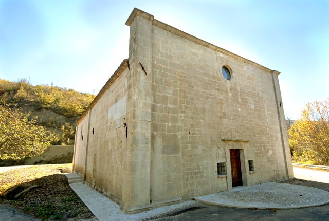 Si tratta di una struttura abbastanza grande, lunga trenta passi, larga venti e alta dodici; ha il pavimento in pietra, il tetto in mattoni, tre porte e un`unica campana dal peso di ottanta libbre. Annessa vi è inoltre una piccola sacrestia con poche e misere suppellettili.