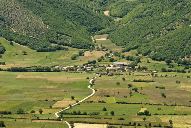 "Ripa": a common term from the 14th century in Umbrian and Tuscan place names meaning “riva” (bank). The little village stands in the splendid mosaic of fields on the plain of Santa Scolastica.