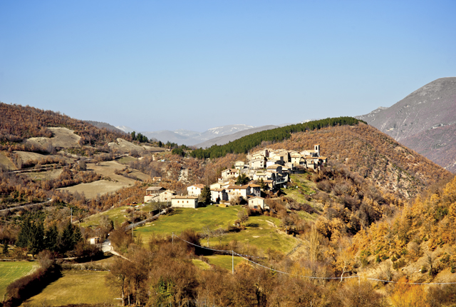 The castle of Usigni, in the municipality of Poggiodomo, was built on a rocky crag overlooking the Tissino valley below.