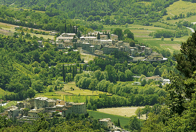 On an isolated hill between the surrounding, looming mountains stands the town of Castel San Felice, which controlled a bridge over the river Nera and the valley to the north. The latter path is still passable and you are advised to walk it starting from S. Anatolia.