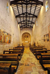The town plan is typical of castles perched on the summit of a hill with concentric circular roads intersected by very steep paths (mainly made of steps) radiating outwards. The buildings are partly ruined and abandoned and partly spoilt by recent restructuring. The religious buildings inside the castle named after San Paolo and San Sebastiano were fairly small due to the presence of the conspicuous complex of San Felice and have been gradually abandoned and, in the case of San Paolo, used for other purposes.