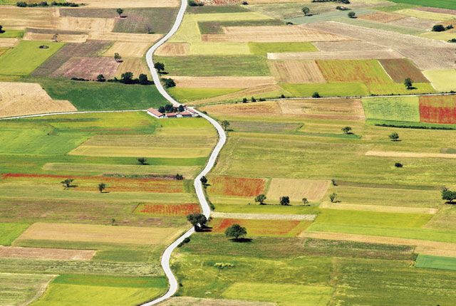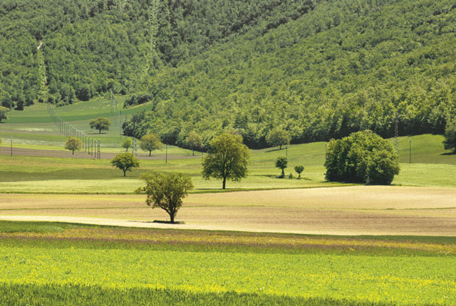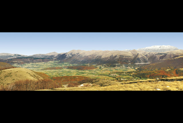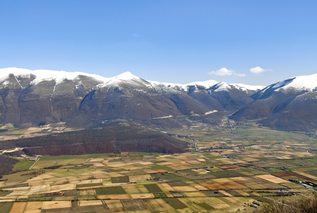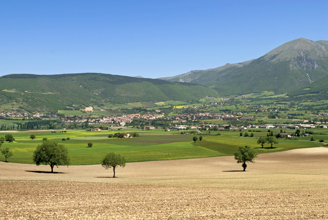 The harmonious shape of the streets and squares of the town of Norcia is reflected in the geometric shapes of the fields fortified by hedges and oaks, and the linear elegance of its churches and the buildings of the centre is reflected again in the mosaic of the villages, scattered across the countryside and joined by ancient roads and trails.