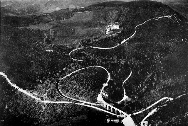 The design of the route proved to be a very difficult task for the time: 19 tunnels, 24 bridges and viaducts, all constructed using advanced engineering and prestigious architectural design, with helical line sections inside the mountain, slopes of up to 45° in the section between Spoleto and the River Nera valley.