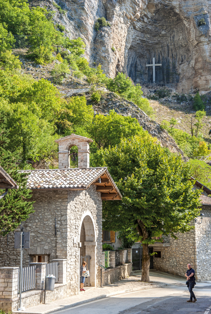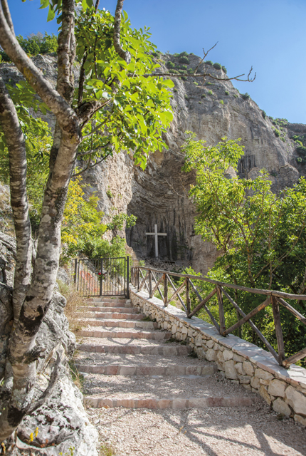 Due to the rock stratifications, the grotto floor is wearing away towards the outside, thus forming a sort of natural amphitheatre, above Roccaporena. Inside, there is a two-layered ledge, on which it is said Rita prayed.