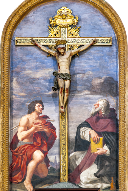 Wooden crucifix - School of Bernini - Saints Sebastian and Antonio Abbot - Church of St. Nicholas - Usigni