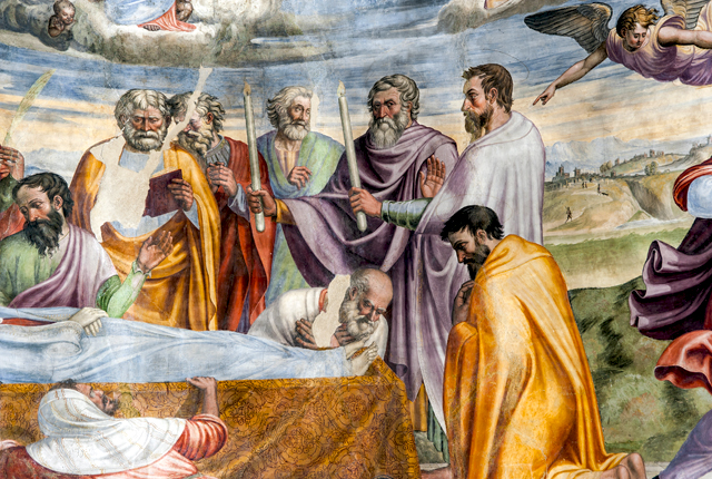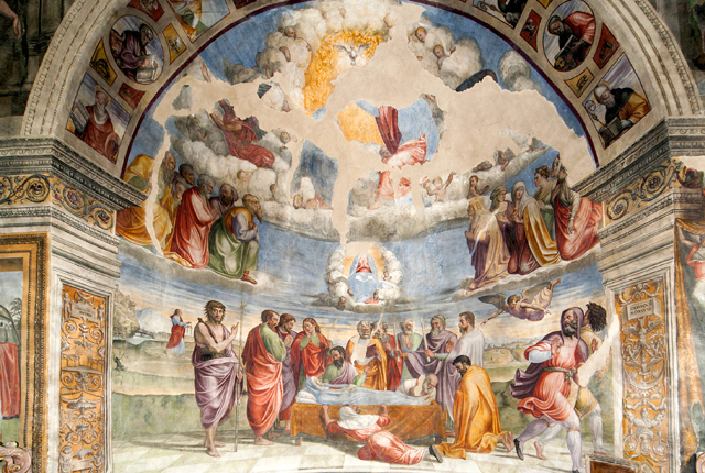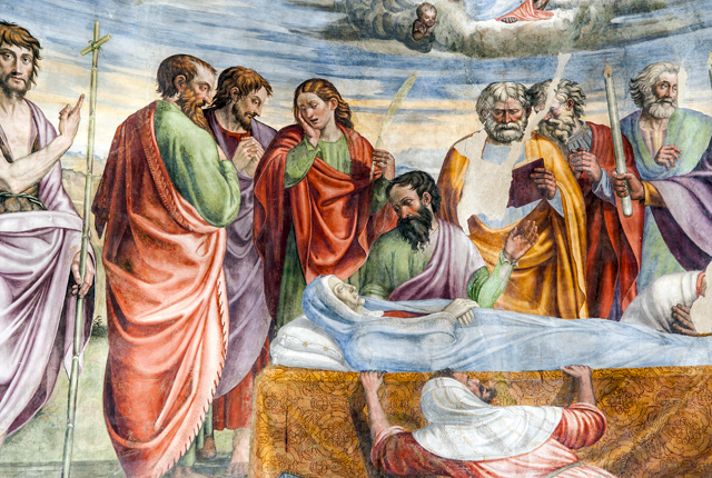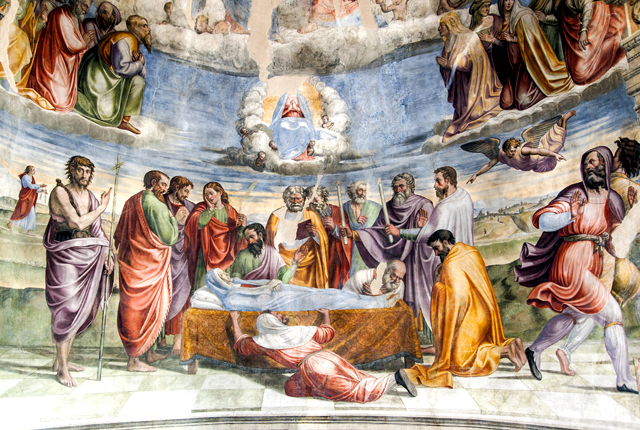Jacopo Siculo (1536), particolare, Morte e Incoronazione della Vergine, Chiesa di San Giovanni Battista - Vallo di Nera