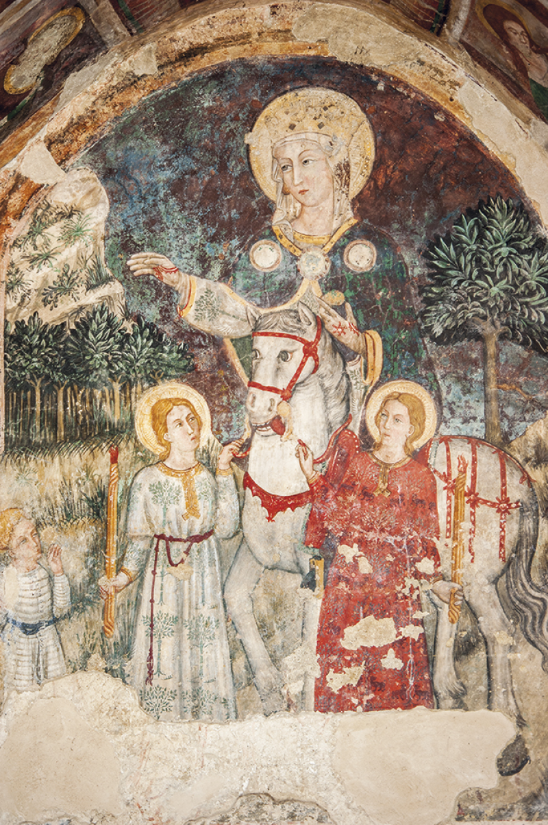 La Chiesa di Santa Maria della Grazie, che si trova nei pressi del cimitero comunale di Caso, conosciuta già in passato come edicola campestre a ricordo di un prodigio ivi dipinto e inserito nella chiesa: una Madonna a cavallo apparve ad un fanciullo. L’affresco è datato al secolo XV. Anche sulla volta sono presenti altre pitture di Santi. Di fronte ai pilastri Madonna col Bambino e Santa Cristina, di scuola de Lo Spagna del 1516. In alto l’Annunciazione ai lati della Natività. Ai lati dell’edicola ci sono due nicchie con dipinta una duplice Crocefissione forse di Giovanni di Girolamo Brunotti, spoletino. Ai lati del Crocifisso di sinistra l’Addolorata e San Giovanni. A destra l’Addolorata e San Girolamo. Anche le pareti laterali rivelano dei dipinti sotto calce: Madonna del popolo o del voto che protegge il popolo e un’altra Madonna col Bambino. A destra altri votivi come San Michele Arcangelo, datato 1565 e un San Rocco.