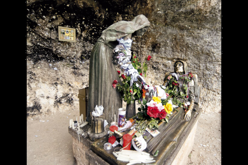 L’orto del Miracolo, situato nel cuore di Roccaporena, è raggiungibile attraverso un piccolo sentiero. All’interno un gruppo bronzeo, opera dello scultore Rodolfo Maleci (1941), raffigura Rita giacente che accoglie i doni della cugina: i fichi e le rose. Cespi di rose e un piccolo fico, simboli di Rita, ornano l’orto del Miracolo. La statua bronzea di Santa Rita è lisa e lustra per le carezze, i baci e per i fazzoletti strofinati sulla statua allo scopo d’impadronirsi di una particella benefica del potere della Santa. Alcuni di quei fazzoletti verranno conservati come reliquie. Tutt’attorno alle due figure, ceri e lumini trasformano il gruppo scultoreo in un altare. E, appese ai polsi delle due statue, corone del rosario, lasciate per chiedere aiuto alla Santa dei Casi Impossibili. Real6